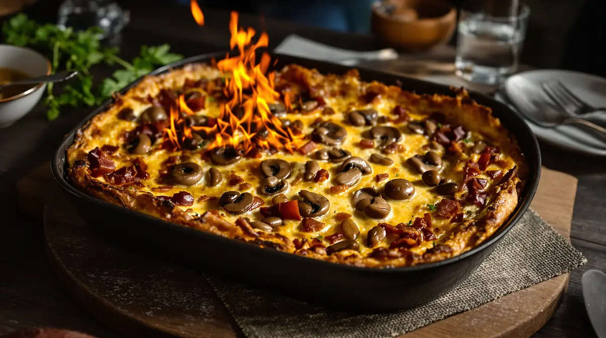 Depuis quelques semaines, dès que le soir tombe un peu frais, ce plat revient sur la table sans même que l’on réfléchisse. Vous savez, ce genre de recette qui sent bon dans toute la cuisine, qui dore tranquillement au four, et qui met tout le monde de bonne humeur avant même la première bouchée. Ici, pas de prise de tête, juste un clafoutis salé aux champignons et au jambon, moelleux dedans, doré dessus, prêt en moins de 45 minutes et validé par toute la maison.